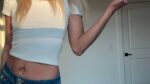 Hottie in sexy clothes excites herself on camera by stroking her tits – DepravedMinx